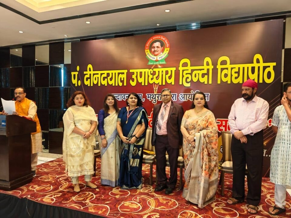 पंडित दीनदयाल उपाध्याय हिंदी विद्यापीठ मथुरा द्वारा आयोजित राष्ट्रीय हिंदी संगोष्ठी एवं सम्मान समारोह का भव्य आयोजन रविवार को होटल रेडिसन ब्लू, पश्चिम विहार, नई दिल्ली में सम्पन्न हुआ। इस कार्यक्रम का उद्देश्य हिंदी भाषा, साहित्य, शिक्षा, समाज सेवा, महिला सशक्तिकरण, पत्रकारिता एवं पर्यावरण संरक्षण जैसे विविध क्षेत्रों में उत्कृष्ट योगदान देने वाले प्रतिभावान व्यक्तित्वों को सम्मानित करना था। समारोह में पद्मश्री डॉ. अरविंद कुमार, पूर्व कुलपति, रानी लक्ष्मीबाई केंद्रीय कृषि विश्वविद्यालय, झांसी मुख्य अतिथि के रूप में उपस्थित रहे। विशिष्ट अतिथि के रूप में डॉ. स्वर्णलता पांचाल, रिसर्च साइंटिस्ट, AIIMS नई दिल्ली ने शिरकत की। संगोष्ठी में मुख्य वक्ता के रूप में लेखिका दीपा मिश्रा ने विचार प्रस्तुत किए।