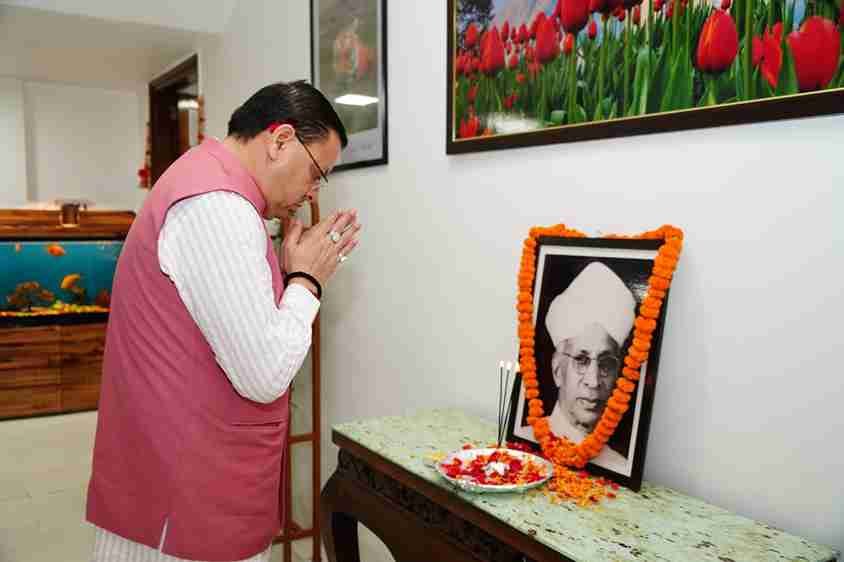 मुख्यमंत्री श्री पुष्कर सिंह धामी ने पूर्व राष्ट्रपति, महान दार्शनिक, शिक्षाविद् एवं विचारक भारत रत्न डॉ. सर्वपल्ली राधाकृष्णन की जयंती पर उनके चित्र पर पुष्प अर्पित कर श्रद्धांजलि दी।
