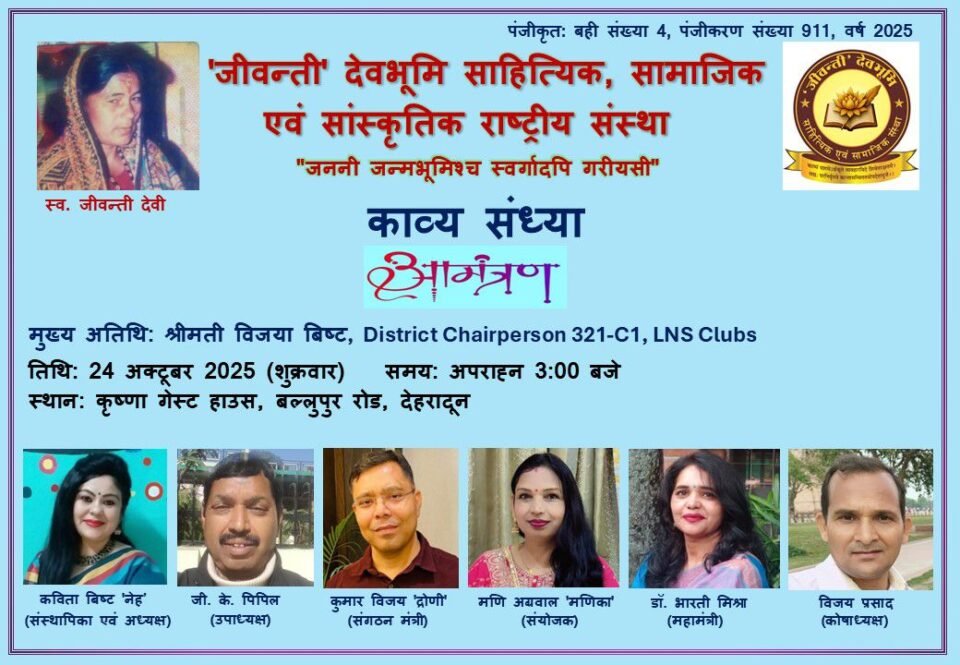 neerajtimes.com : – ‘जीवन्ती’ देवभूमि साहित्यिक एवं सामाजिक संस्था तथा राष्ट्रीय कवि संगम गढ़वाल इकाई के संयुक्त तत्वावधान में