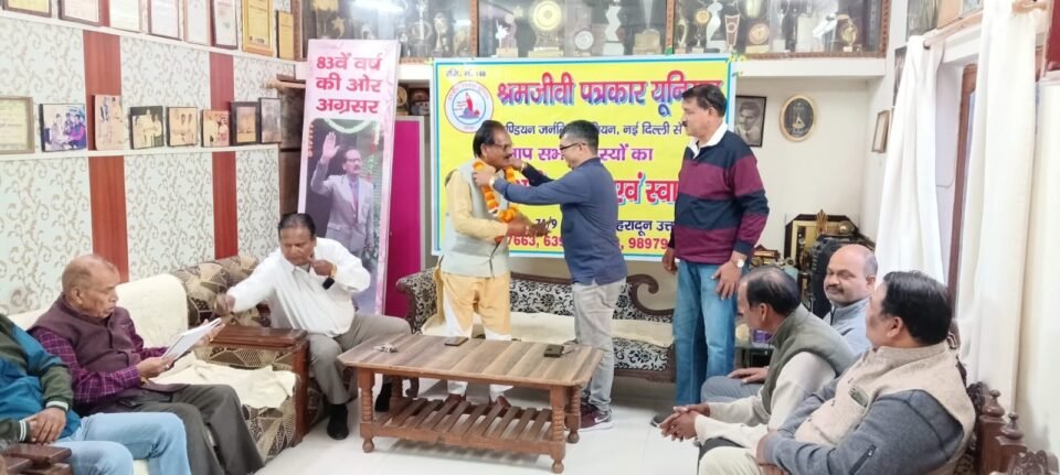 neerajtimes.com देहरादून। श्रमजीवी पत्रकार यूनियन जनपद देहरादून की ओर से राज्य स्थापना दिवस और राज्य की रजत जयंती पर समस्त प्रदेश वासियों और पत्रकार बंधुओं को हार्दिक शुभकामनाएं और बधाई। राज्य में प्रकाशित नये समाचार पत्रों को सूचना विभाग द्वारा विगत चार सालों से विज्ञापन के लिए सूचीबद्ध न किये जाने पर जिलाध्यक्ष डॉ लक्ष्मी नारायण द्वारा चिंता व्यक्त करते हुए कहा कि कैसे करके समाचार पत्र के स्वामी समाचार पत्र को प्रकाशित कर रहे हैं और विभाग द्वारा नये समाचार पत्रों के बारे में सूचीबद्धता के बारे में नहीं सोचा जा रहा है जो चिंता का विषय है। जिला महामंत्री नरेश बलोनी ने कहा कि वर्तमान समय में जिला यूनियन का विस्तार करना होगा और यूनियन से जुड़े सदस्यों को अपने समाचार पत्र संबंधी कोई भी परेशानी हो उसका समाधान किया जायेगा। यूनियन के सदस्य बीर सिंह ने कहा कि यूनियन से जुड़े सभी सदस्य सक्रिय रूप से अपने भागीदारी निभाएं और श्रमजीवी पत्रकार यूनियन देहरादून द्वारा जो भी दिशा निर्देश मिलते हैं उनका पालन करें, तभी यूनियन मजबूत होगी और आगे बढ़ेगी।