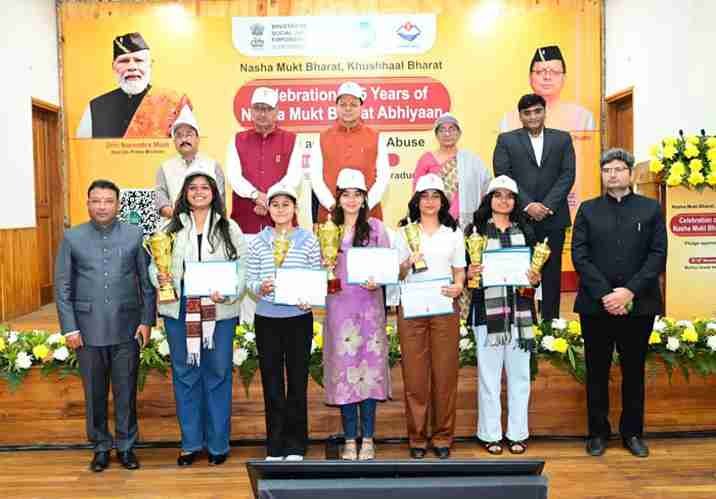 मुख्यमंत्री धामी ने उपस्थित युवाओं को नशा मुक्त भारत अभियान की शपथ भी दिलाई, साथ ही स्कूल कॉलेजों में राज्य स्तर पर आयोजित भाषण एवं निंबध प्रतियोगिता के विजेताओं को भी सम्मानित किया।