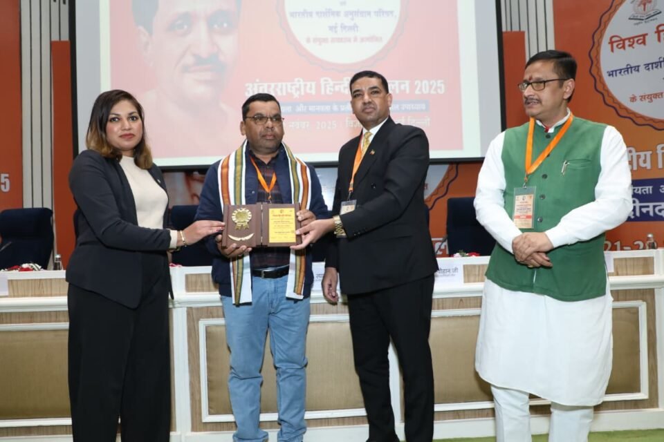 neerajtimes.com देवरी- विश्व हिंदी परिषद द्वारा 21- 22 नवंबर 2025 को विज्ञान भवन, नई दिल्ली में दो दिवसीय अंतर्राष्ट्रीय हिंदी सम्मेलन का आयोजन किया गया। जिसमें सागर जिले से डॉ अवनीश मिश्रा, डॉ बी डी पाठक , महेंद्र लोधी, शिवम् शर्मा एवं डॉ सीताराम आठिया ने सहभागिता कर शोध पत्रों का वाचन किया। सम्मेलन के प्रथम दिवस डॉ. सीताराम आठिया की 11 पुस्तकों का विमोचन मुख्य अतिथि कवींद्र गुप्ता, उप राज्यपाल, लद्दाख, अजय मिश्रा पूर्व केंद्रीय गृह राज्यमंत्री, बलदेव पुरुषार्थ संयुक्त सचिव आर्थिक कार्य विभाग वित्त मंत्रालय भारत सरकार, विश्व हिन्दी परिषद के महासचिव डॉ विपिन कुमार, देवी प्रसाद मिश्रा, राष्ट्रीय अध्यक्ष पद्म भूषण डॉ यारलगड्डा लक्ष्मी प्रसाद, प्रो रामनारायण पटेल आचार्य दिल्ली विश्वविद्यालय, प्रो सच्चिदानंद मिश्रा सचिव भारतीय दार्शनिक अनुसंधान परिषद, डॉ शकुंतला सरुपपिया द्वारा किया गया। अंतर्राष्ट्रीय हिंदी सम्मेलन में डॉ आठिया की लोकार्पित 11 पुस्तकें है। हिंदी सिनेमा की प्रमुख अभिनेत्रियां, भारतीय दलित महिला साहित्यकार, प्रवासी भारतीय महिला साहित्यकार , प्रशासन में महिलाओं की भूमिका, भारत रत्न प्राप्त विदुषी महिलाएं, हिंदी साहित्य के विविध आयाम और स्त्री विमर्श, भारत रत्न प्राप्त महापुरुषों की जीवनियां, भारत के महान व्यक्तित्व, हिंदी सिनेमा के प्रमुख अभिनेता, भारत की प्रथम महिला विदेश मंत्री, सुषमा स्वराज, भारत की प्रथम महिला आई पी एस किरण वेदी। उपरोक्त पुस्तके जेटी एस पब्लिकेशन दिल्ली, नीलम पब्लिकेशन मुंबई, कोलकाता प्रेस बुक, बीएमपी पब्लिकेशन फरीदाबाद, एविनसपब प्रकाशन बिलासपुर, एचएसआरए पब्लिकेशन बेंगलुरु से प्रकाशित की गई है।