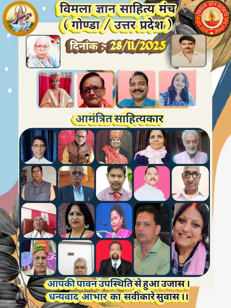 neerajtimes,com गोंडा (उत्तर प्रदेश) – माता-पिता/ सास-ससुर की स्मृतियों को जीवंत रखने के उद्देश्य से अंजू श्रीवास्तव/ सुधीर श्रीवास्तव द्वारा स्थापित ‘विमला ज्ञान साहित्य मंच’ पर आभासी काव्य गोष्ठी का ‘आयोजन किया गया। गोष्ठी अपराह्न 04 बजे से शाम लगभग 06.30 बजे तक निरंतर गतिमान रहकर भव्यता के साथ संपन्न हुई।