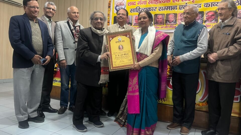 को सम्मानित किया गया। शब्द गंगा साहित्यिक एवं सांस्कृतिक मंच एवं पत्रकार संघ द्वारा प्रेस क्लब हरिद्वार में आयोजित साहित्य सम्मान एवं काव्य गोष्ठी में आमंत्रण एवं सम्मान देने हेतु अध्यक्ष के पी सिंह , संस्थापक, संयोजक बृजेन्द्र हर्ष , रविंद्र नाथ कौशिक , सचिव डॉ मेनका त्रिपाठी का हार्दिक आभार । गीत के सशक्त हस्ताक्षर शुक्ल, ग़जल सम्राट अंबर खरबंदा , गीतकार शिव मोहन, कृष्ण सुकुमार एवं विजेंद्र शर्मा के साथ मंच साँझा करने का दुर्लभ संयोग हुआ।