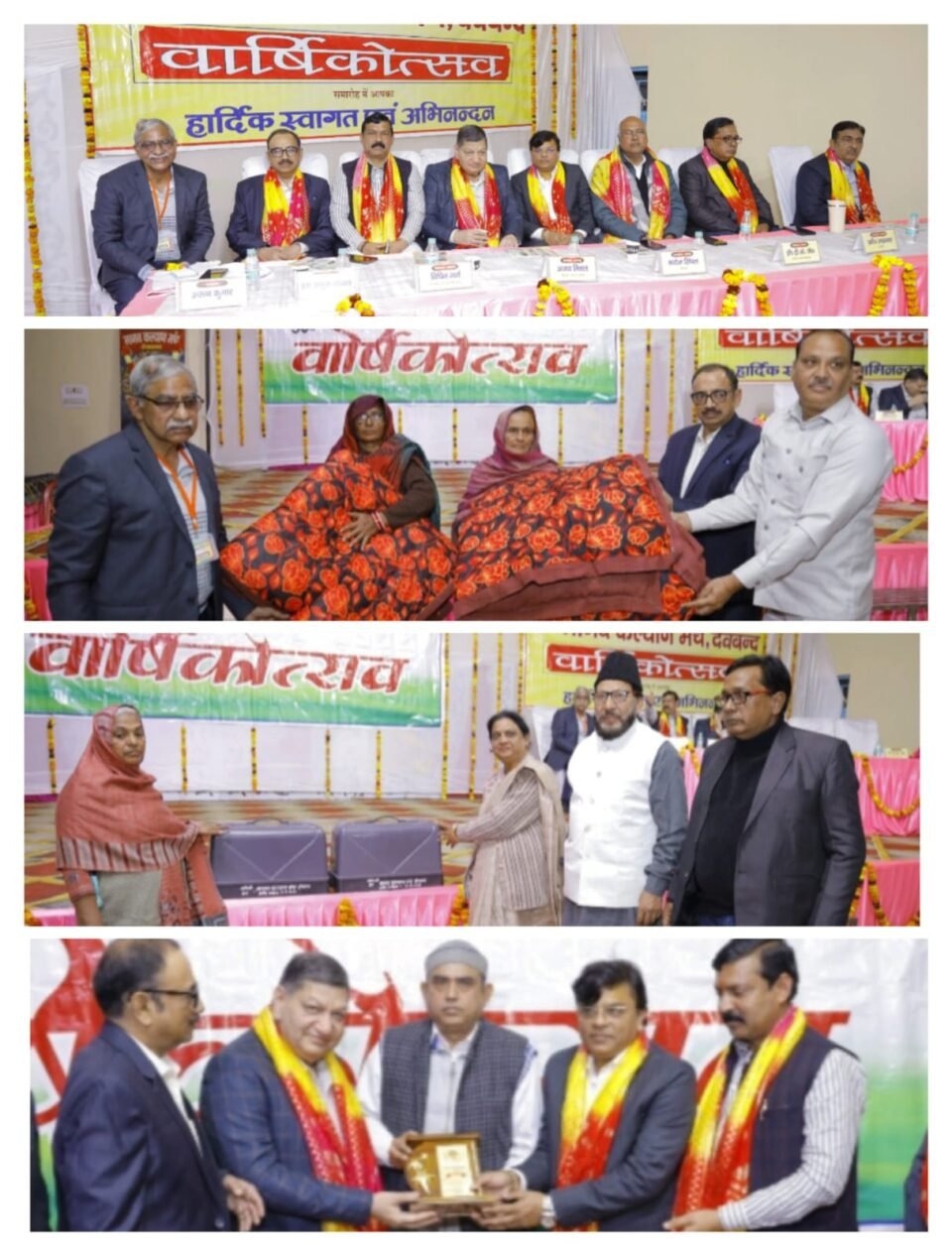 neerajtimes,com देवबन्द – मानव कल्याण मंच का 30 वा वार्षिक उत्सव कार्यक्रम का आयोजन तेज पैलेस रणखंडी रोड देवबंद पर हर्ष और उल्लास के साथ संपन्न हुआ l कार्यक्रम का उद्धघाटन नारियल तोड़कर समारोह अध्यक्ष अजय मित्तल चेयरमैन मेपल्स अकैडमी व फीता काटकर विशिष्ट अतिथि श्री विपिन गर्ग अध्यक्ष नगर पालिका परिषद द्वारा किया गया मां सरस्वती के चित्र पर माल्यार्पण सम्मानित अतिथि राजेश गुप्ता अध्यक्ष किरायाना एसोसिएशन द्वारा किया गया तथा मां सरस्वती के चित्र के सम्मुख दीप प्रज्वलन प्रदीप अग्रवाल एडवोकेट, मनोज सिंघल सभासद व अध्यक्ष नगर उद्योग व्यापार मंडल द्वारा किया गया l