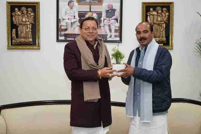 मुख्यमंत्री श्री पुष्कर सिंह धामी से आज मुख्यमंत्री आवास में सड़क परिवहन एवं राजमार्ग मंत्रालय, भारत सरकार में राज्य मंत्री श्री अजय टम्टा ने मुलाक़ात की।