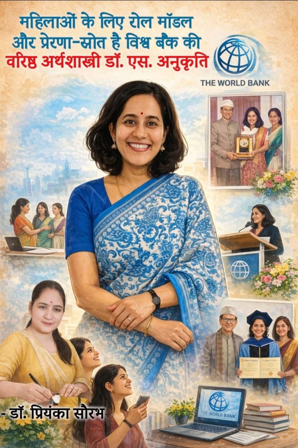 डॉ. अनुकृति को देखकर कोई कल्पना भी नहीं कर सकता कि साधारण-सी दिखने वाली यह युवा महिला विश्व बैंक, वाशिंगटन डीसी (अमेरिका) में वरिष्ठ अर्थशास्त्री जैसे महत्त्वपूर्ण पद पर प्रतिष्ठित डॉ. एस. अनुकृति हैं। लेकिन यह सच है। विश्व बैंक में बतौर अर्थशास्त्री ज्वाइन करने के साथ ही डाॅ. अनुकृति विश्व की अर्थव्यवस्था को नियंत्रित करने वाली इस सर्वोच्च बैंकिंग संस्था की दस सदस्यीय मानव संसाधन समिति की सदस्य भी बन गई थीं। वर्तमान में यह विश्व बैंक के ‘सेंटर फाॅर रिसर्च ऑन वीमेन एंड जाॅब्स’ की सह-अध्यक्ष, पीएफ-इंपेक्ट कंसोर्टियम के टेक्निकल एडवाइजरी ग्रुप की सदस्य तथा ‘डेवलपमेंट इंपैक्ट ब्लाॅग’ की सक्रिय योगदानकर्ता के साथ-साथ बंग्लादेश बेस्ड सोशल साइंस रिसर्च इंस्टीट्यूट ‘ब्राक इंस्टीट्यूट ऑफ गवर्नेंस एंड डिवेलपमेंट’ की दो समितियों ‘वी-डिफाइन’ और ‘वी-काॅनेक्ट’ की सदस्य भी हैं। इससे पूर्व, सात वर्षों तक बीसी यूनिवर्सिटी, बोस्टन (अमेरिका) में अर्थशास्त्र की प्रोफ़ेसर रही डॉ. अनुकृति के पति सिद्धार्थ रामलिंगम भी हार्वर्ड यूनिवर्सिटी में प्रोफेसर और विश्व बैंक में सीनियर कंसल्टेंट रह चुके हैं तथा वर्तमान में वाशिंगटन डीसी (अमेरिका) बेस्ड एक बहुराष्ट्रीय कंपनी में स्ट्रैटजिक और प्लानिंग मैनेजर के पद पर कार्यरत हैं।