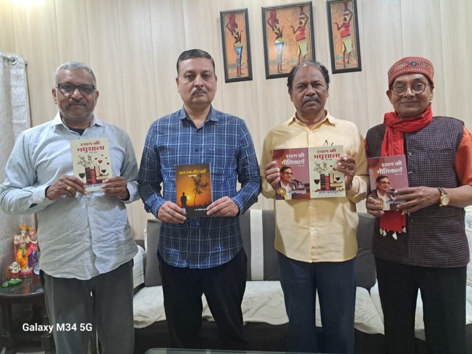 neerajtimes.com जबलपुर – कवि संगम त्रिपाठी संस्थापक प्रेरणा हिंदी प्रचारिणी सभा जबलपुर मध्यप्रदेश ने अपने प्रयागराज प्रवास के दौरान श्याम फतनपुरी की कृतियां श्याम की गीतिकाएं व श्याम की मधुशाला एवं डॉ सोमनाथ शुक्ल प्रयागराज की गजल संग्रह शाम तक लौटा नहीं का लोकार्पण किया। इस अवसर पर श्याम फतनपुरी, डॉ सोमनाथ शुक्ल, विजय कुमार शुक्ल उपस्थित रहे।