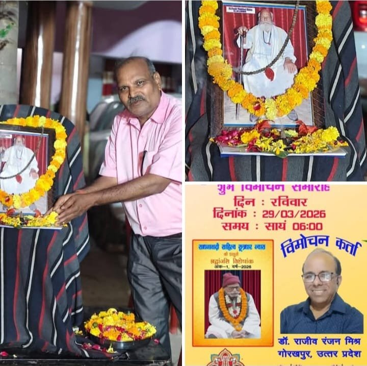 इसी क्रम में नवोदय वैश्विक प्रज्ञान साहित्यिक संस्थान के आभासी मंच पर साधनावादी साहित्यकार न्यास द्वारा अपने पूर्व संरक्षक को केंद्रित/प्रकाशित श्रद्धांजलि विशेषांक का विमोचन वरिष्ठ अधिवक्ता/कवि डा. राजीव रंजन मिश्र ने किया।